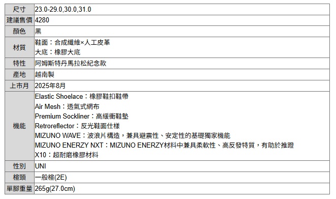 MIZUNO ENERZY NXT:MIZUNO ENERZY材料中兼具柔軟性、高反發特質,有助於推蹬