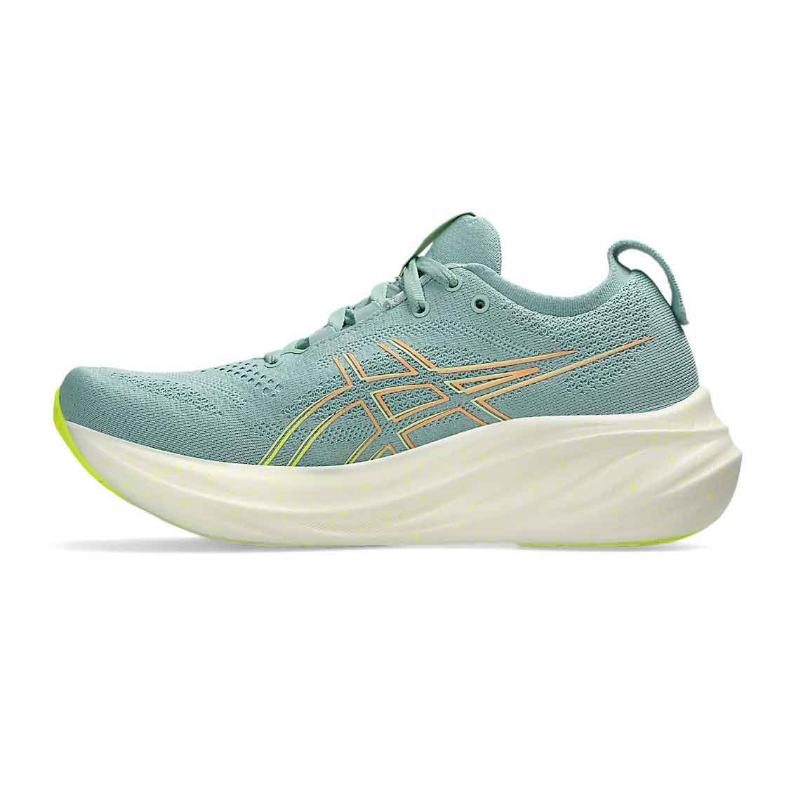 •GEL-NIMBUS 系列採用優化的彈性針織鞋面與後跟拉環設計,提升整體透氣度與親膚性,並強化中足的合腳性。
